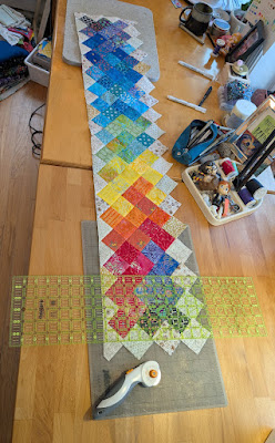 I chain-pieced the rows in two halves (ever so carefully!). I wrote myself a note that these rows are "backwards" and I needed to actually assemble them rotated 180 degrees and the other way around. Ha! (If you know, you know.) (LOL)
